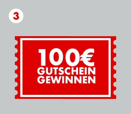 - 3 Schritt: Mit etwas Glück gewinnst du einen von drei 100€ Gutscheinen für deine nächste Bestellung! Der Gutschein wird den Gewinnern per E-Mail zugestellt.